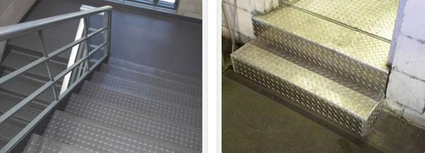 Aluminium stair tread plates are ideal for retrofitting over existing dangerously slick flooring in applications that require a lightweight corrosion resistant surface. Non-slip aluminum plate stair treads are a cost effective way to create an instantly safe surface without completely replacing existing flooring.,Non slip aluminum stair tread has high rigidity and skid resistance, such materials are widely used as vehicle flooring and anti-skid. The stair tread has a male/female interlocking design and can be installed over structural members to provide a solid, skid resistant flooring.